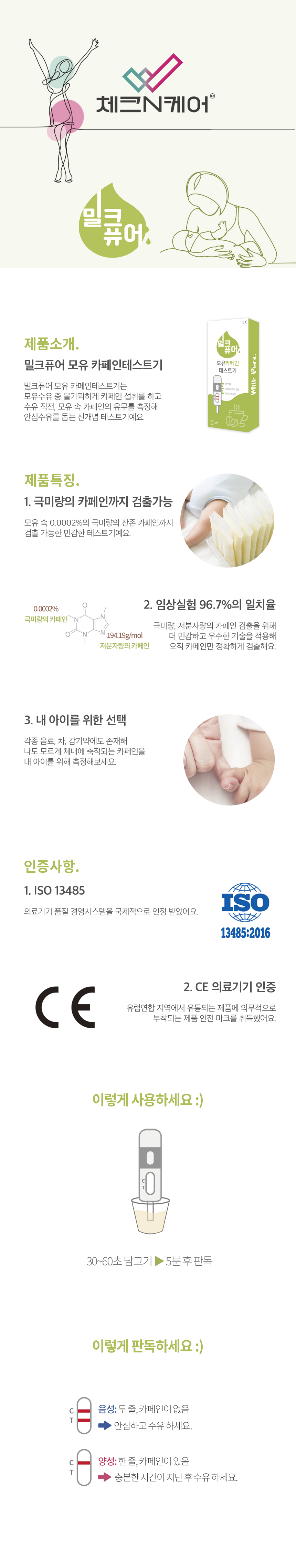 본사 [밀크퓨어] 모유 카페인 테스트기 (3개입/박스) - 모유 수유 중 커피 / 카페인 체크 후 안전수유
