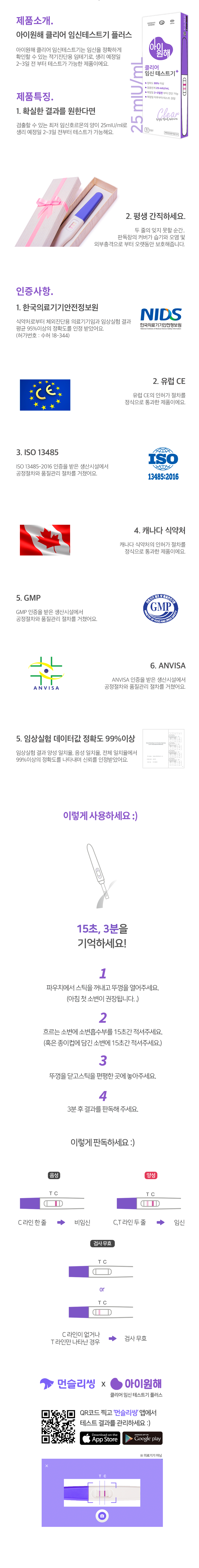 본사 [아이원해] 클리어 임신 테스트기 플러스 (스틱형, 1개입/박스) - 적기진단용 / 생리 예정일 2-3일전 부터 사용가능
