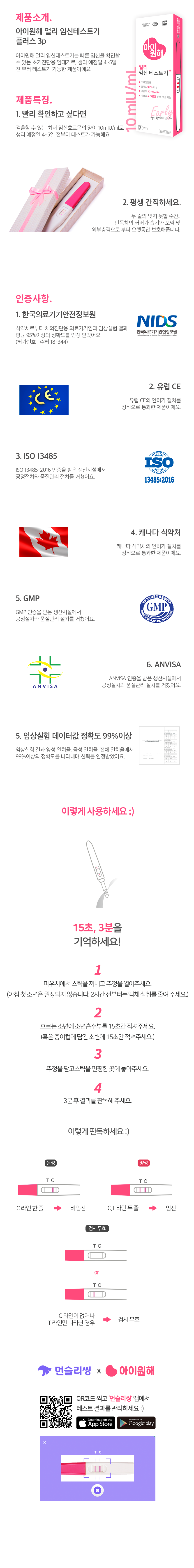 본사 [아이원해] 얼리 임신 테스트기 플러스 (스틱형, 3개입/박스) - 조기진단용 / 생리예정일 4~5일전 부터 사용가능